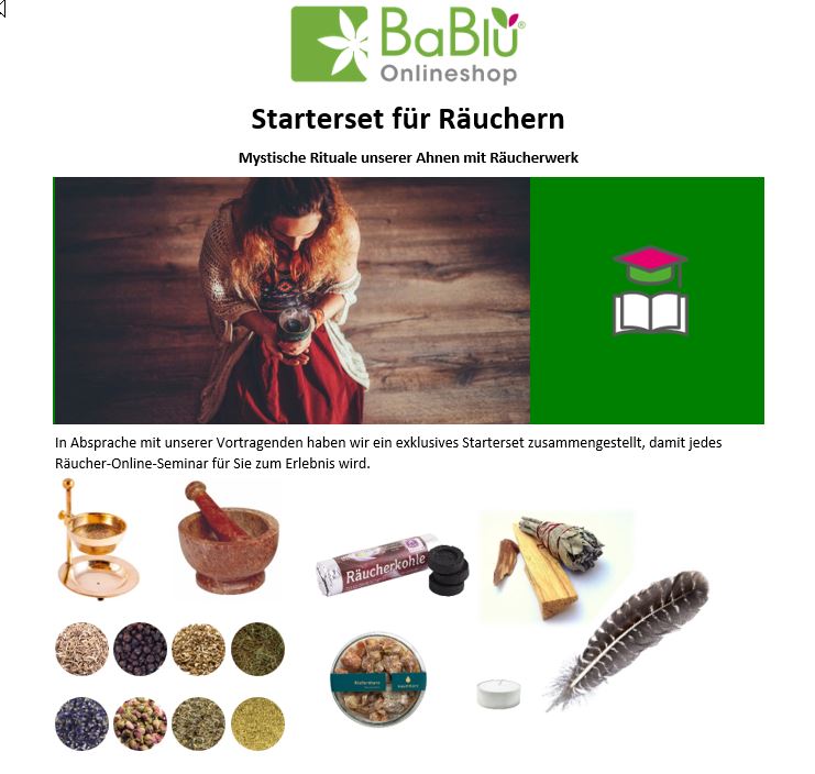 In Absprache mit unseren Vortragenden haben wir ein exklusives Starterset begleitend für die ersten magischen Räuchererfahrungen zusammengestellt, damit die Räucherausbildungen – v.a. auch ONLINE – für Sie zum Erlebnis werden!